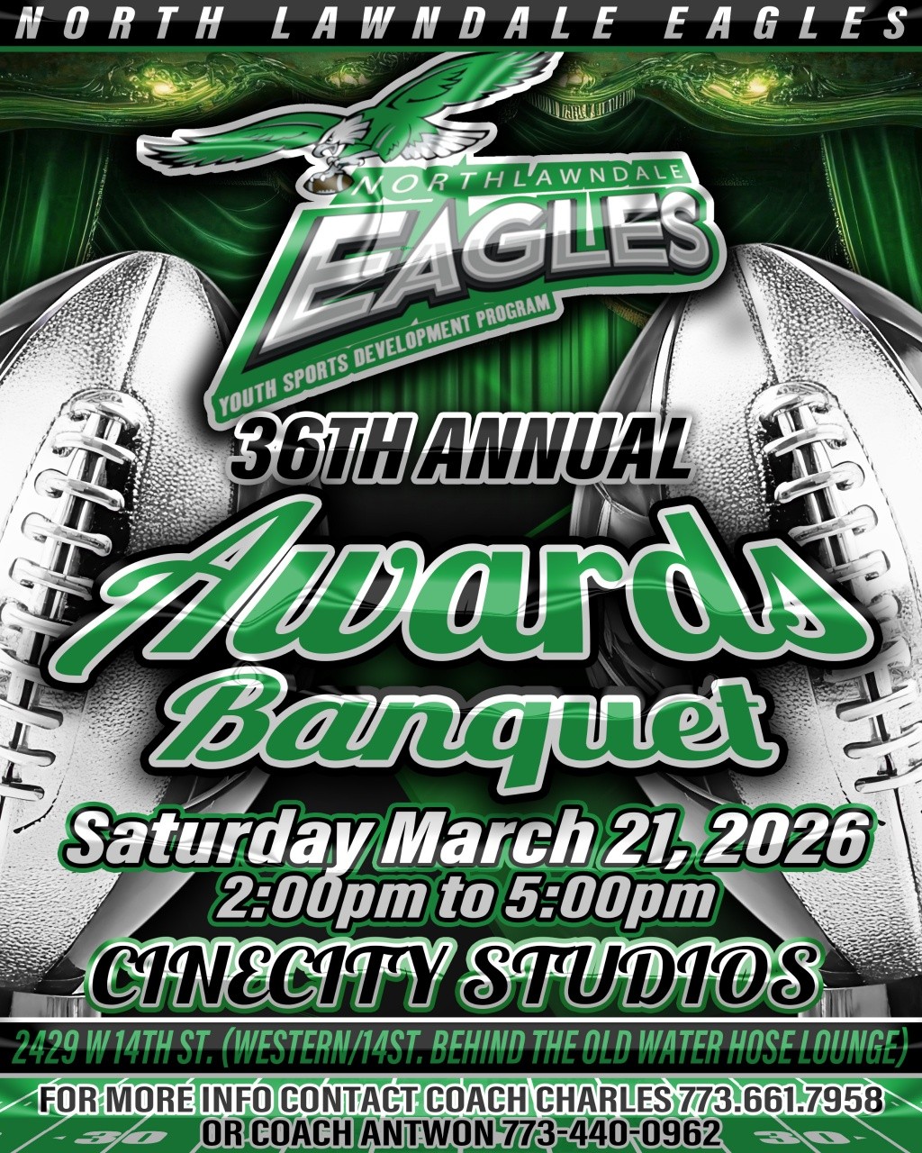 The Riot Fest Foundation is proud to support the North Lawndale Eagles as they celebrate their 36th season at the Annual Awards Banquet on March 21, 2026.